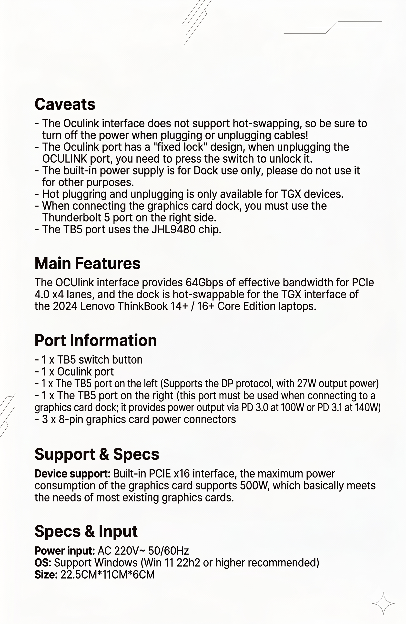 - 1x Oculink port